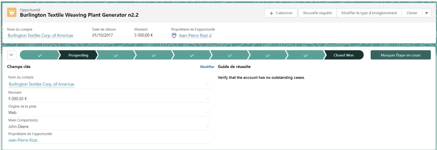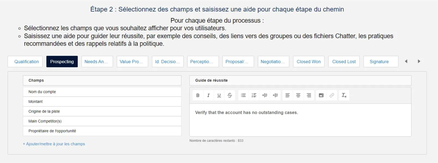 Il s’agit vraiment d’un niveau plus avancé d’accompagnement, tant en termes d’expérience utilisateur qu’en termes de flexibilité et d’automatisation. Cependant, Salesforce permet de créer seulement 3 processus pas à pas de manière gratuite. Pour en faire plus, et donc accompagner tous vos utilisateurs sur toute l’application, il faudra prendre une licence supplémentaire.