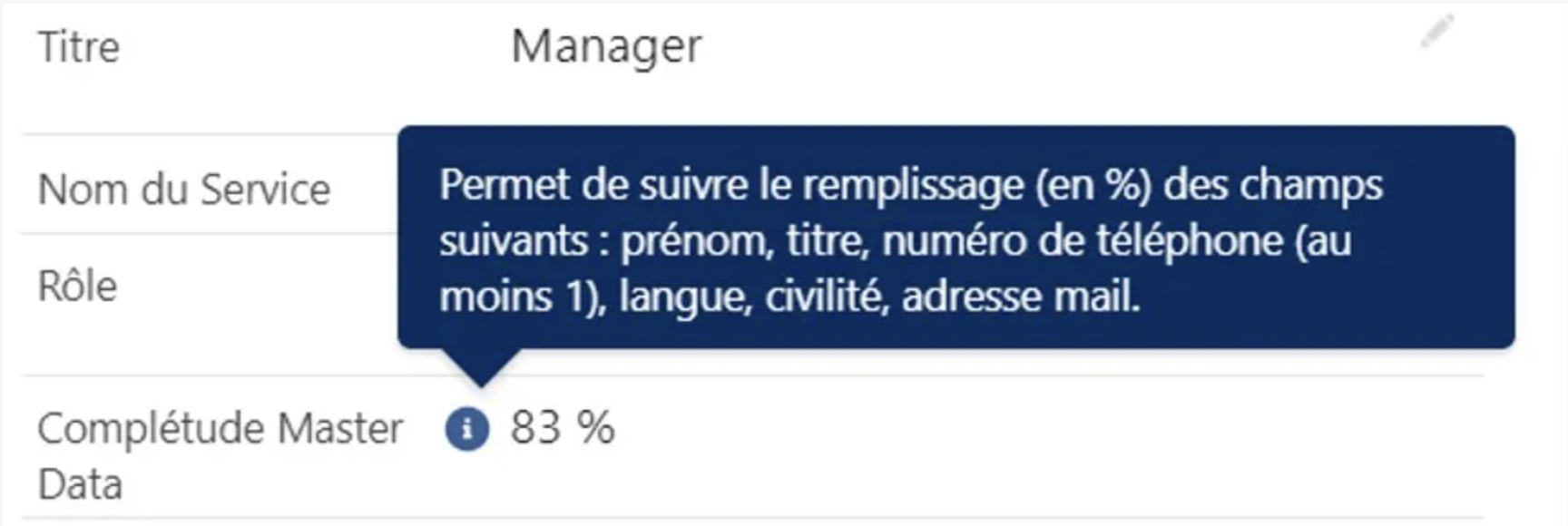 À la fois discret et efficace, le texte d’aide peut être paramétré pour chaque champ, standard ou personnalisé. Il permet de communiquer de l’information sur un champ précis.