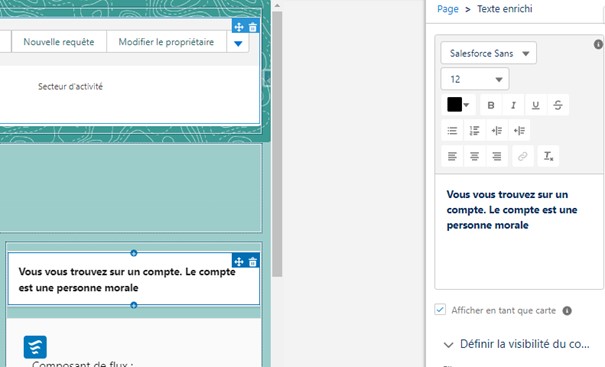 Salesforce vous offre également la possibilité de paramétrer à plusieurs endroits des composants qui affiche du texte mis en forme : un moyen efficace de délivrer des conseils sur certaines pages Lightning. La visibilité du composant peut être définie selon des filtres.