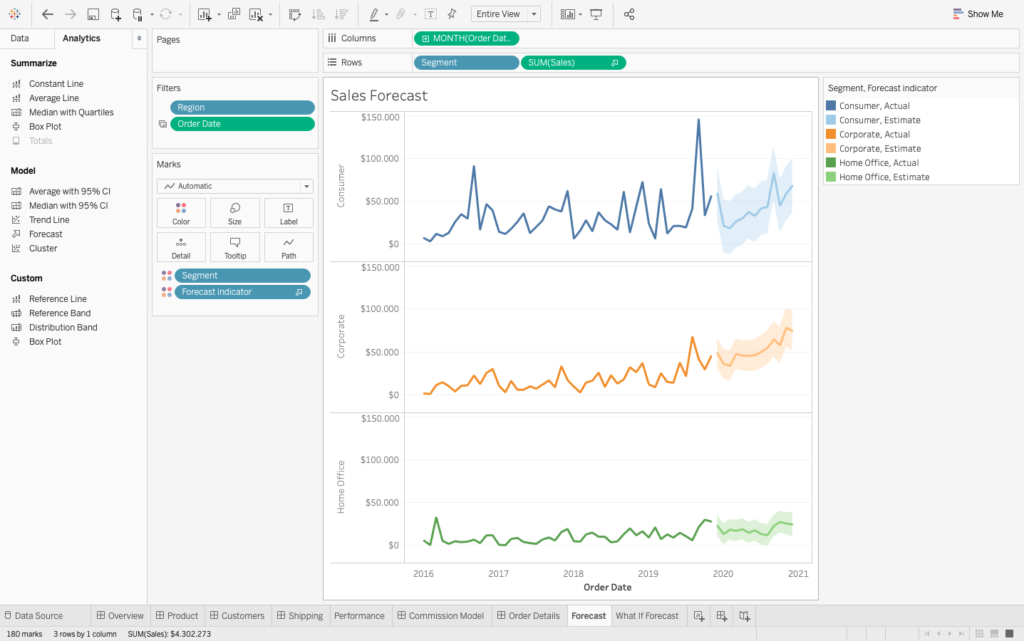 In Tableau, creating a quick sales forecast that takes into account the trend and seasonality is just a matter of minutes.