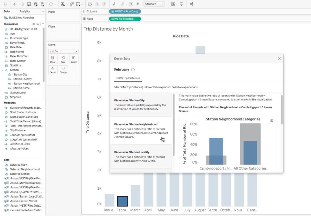 Dzięki rozbudowanej integralności, Tableau umożliwia użytkownikom tworzenie dashboardów oraz raportów poprzez łączenie i mieszanie różnych zbiorów danych. Obszerny moduł wizualizacji danych, pozwala na tworzenie analiz oraz interaktywnych widoków w postaci np. wykresów, diagramów, map czy Sankey chartów.